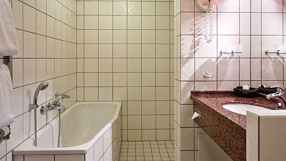Spacious room with bathtub, mini-bar, flat screen TV.